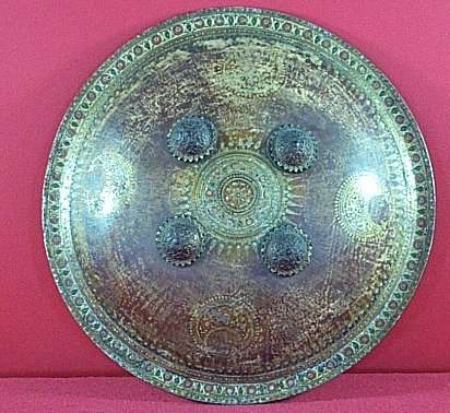 decorated in gilded decoration, with four gilt brass bosses, with original velvet covered arm-pad and straps en suite