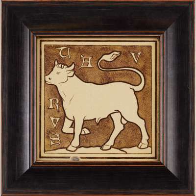 ‘TAURUS’, FRAMED ZODIAC TILE, CIRCA 1880