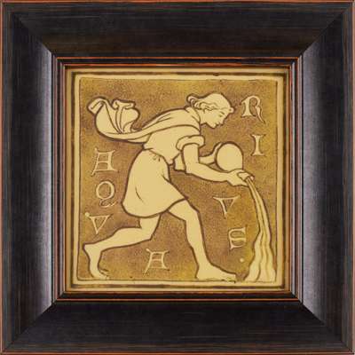 ‘AQUARIUS’, FRAMED ZODIAC TILE, CIRCA 1880