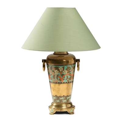 brass and champleve enamel, later converted to electricity, contemporary shade