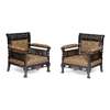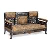 ebonised wood with gilt embellishments, later covered with period upholstery, comprising a SOFA, 158cm wide, 83.5cm high, 69cm deep; and PAIR OF ARMCHAIRS, 74cm wide, 84cm high, 69cm deep