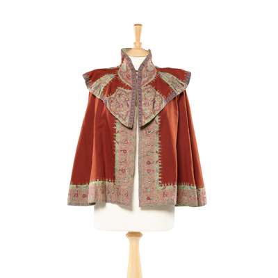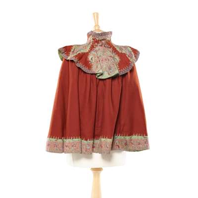 Note: Probably made from an earlier Kashmir shawl and fashioned into a cape for the fashion-conscious European market.