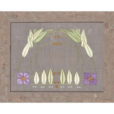 coloured silk threads on a grey linen ground, later framed