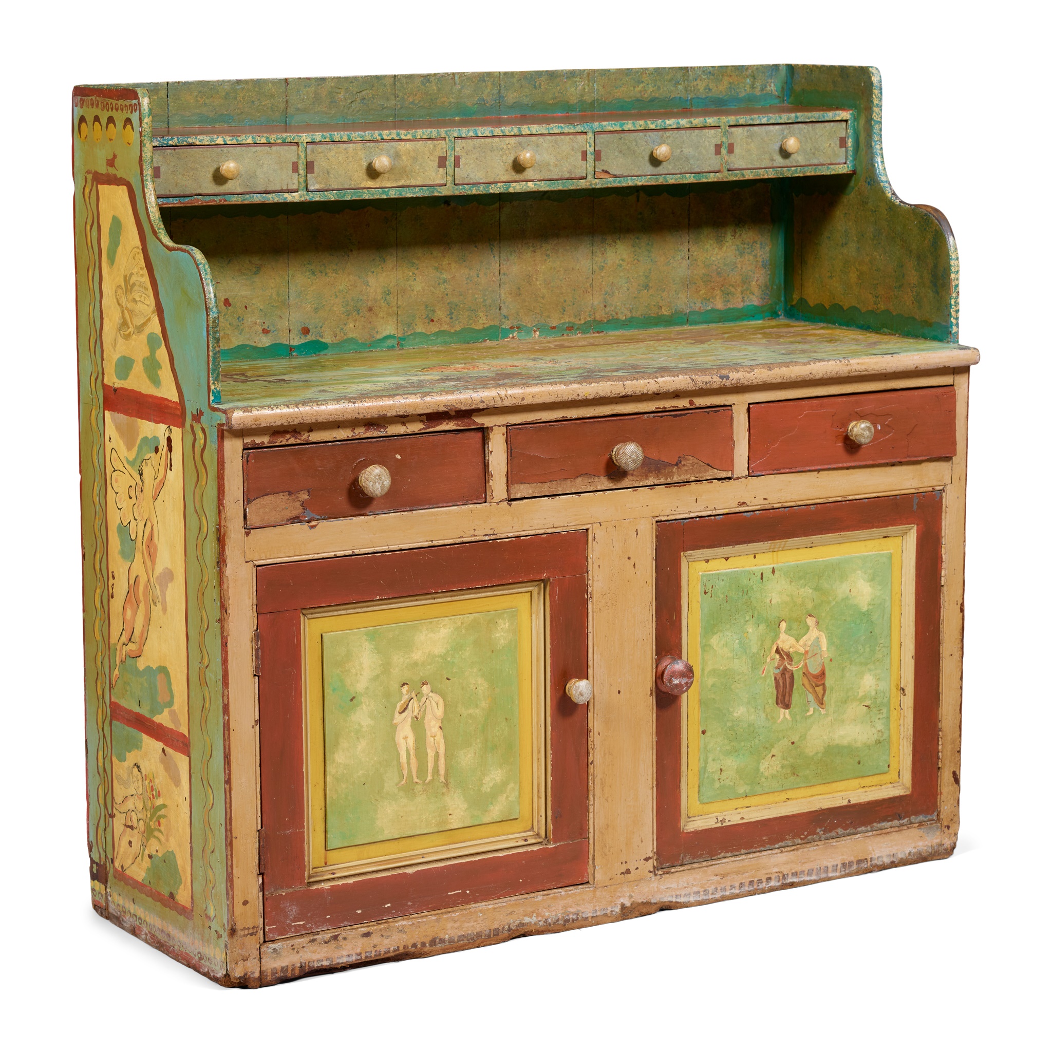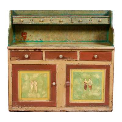 19TH CENTURY KITCHEN DRESSER, THE DECORATION CIRCA 1930
