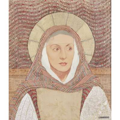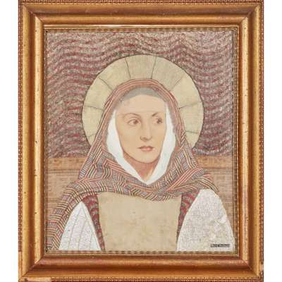 appliqué ‘fabric mosaic panel’, painted silk, with applied signature lower right MARY IRELAND
