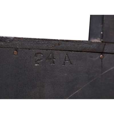 ebonised wood, clear and bevelled mirrored glass with brass fittings, stamped to reverse 24A