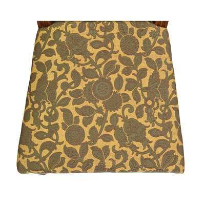 walnut, re-upholstered in period silk and wool woven fabric in the manner of B.J. Talbert or H.W. Batley, close-nailed, decorative brass caps and castors