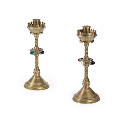 PAIR OF GOTHIC REVIVAL THREE-BRANCH CANDELABRA, CIRCA 1880