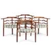 the wide flat scrolling top rails and arms above twin wavy pierced ladderback splats and wide serpentine stuffover seats, raised on fluted square chamferred legs (4)