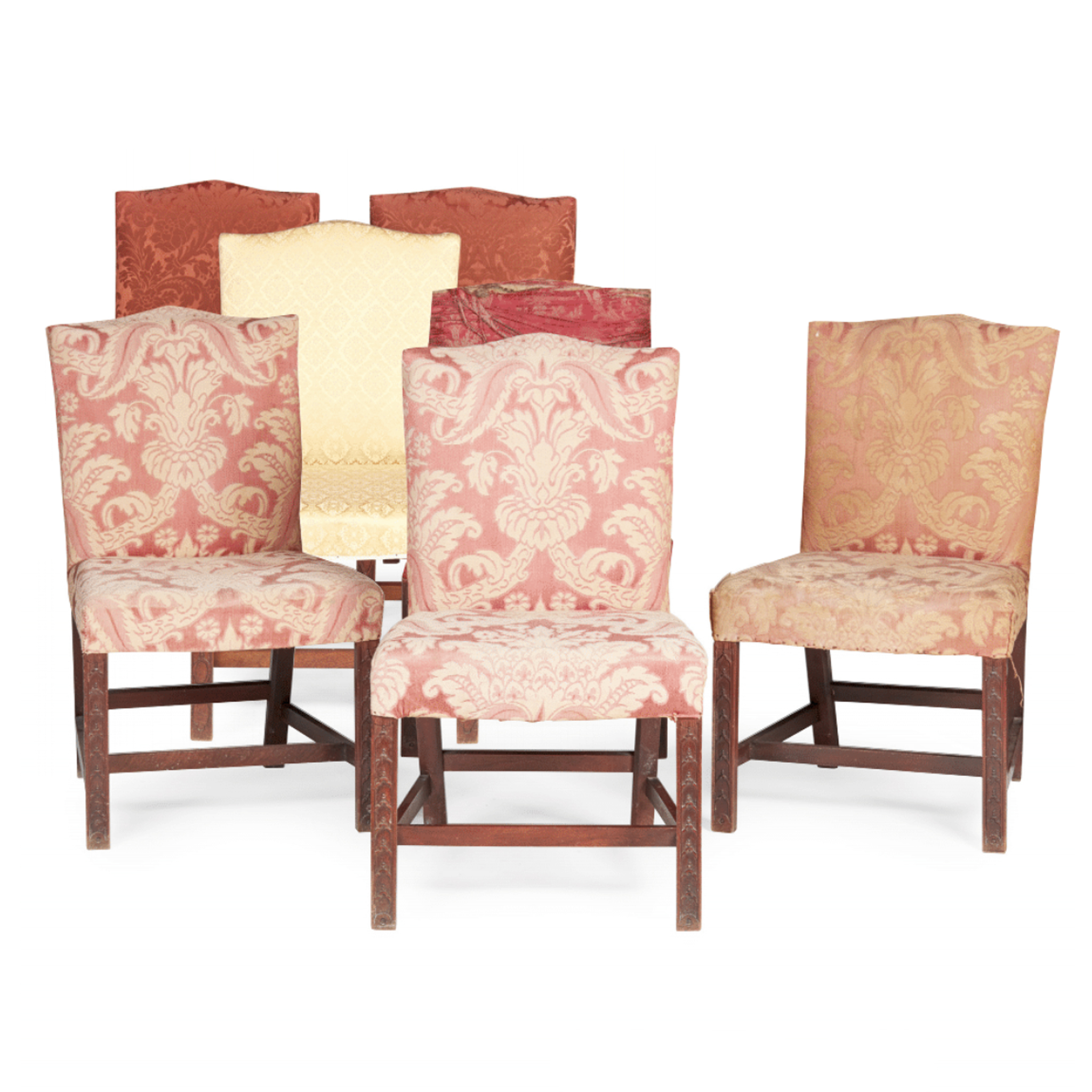 MATCHED SET OF SEVEN GEORGE III UPHOLSTERED SIDE CHAIRS