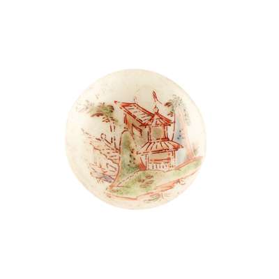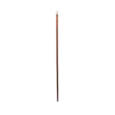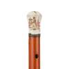 the porcelain knob decorated with figures in a landscape in the Kakiemon style, the plain cane with a cord hole, with a brass tip