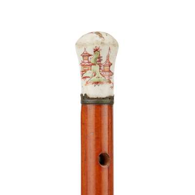 GEORGE III CHANTILLY PORCELAIN AND MALACCA DRESS CANE