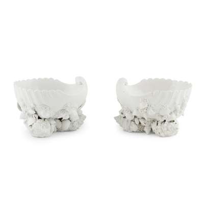 PAIR OF BOW PORCELAIN WHITE SHELL SALTS