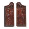 each panel carved from a large burr section, framed on three sides with foliate carved borders and surmounted by a scroll pediment (2)
