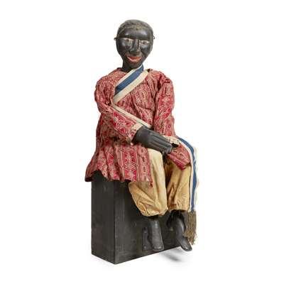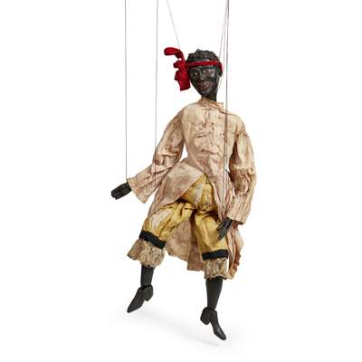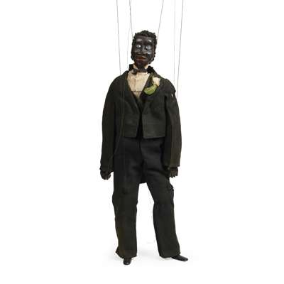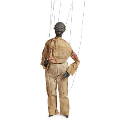 Note: Tiller-Clowes produced their own version of Harriet Beecher Stowe's 1852 novel Uncle Tom's Cabin. These marionettes may well be part of the cast for this performance, including what might be a version of the irrepressible 'Topsy', the female marionette with the red hair band.