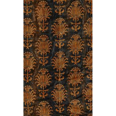 with allover gold flowerhead pattern reserved on a dark green ground, each lined and inter-lined (2)