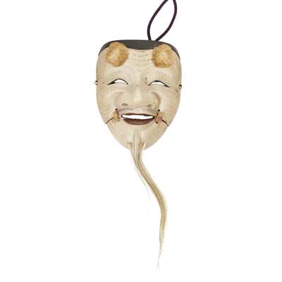 Note: In the hierarchy of Noh characters, Okina (old man), is one of the most important masks. It is considered particularly sacred and can be seen as the embodiment of god, bringing longevity and prosperity to families.