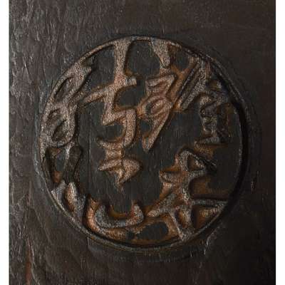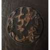 hinoki wood, gesso, paint, impressed seal mark on reverse, with fabric pouch
