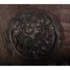 hinoki wood, gesso, paint, impressed sealmark on reverse, with fabric pouch
