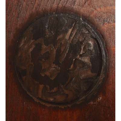 hinoki wood, gesso, paint, impressed seal mark on reverse, with fabric pouch