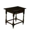 the rounded rectangular top above a frieze drawer, raised on block and turned legs united by stretchers