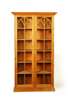 the moulded cornice above astragal glazed doors enclosing shelves, raised on a plinth base