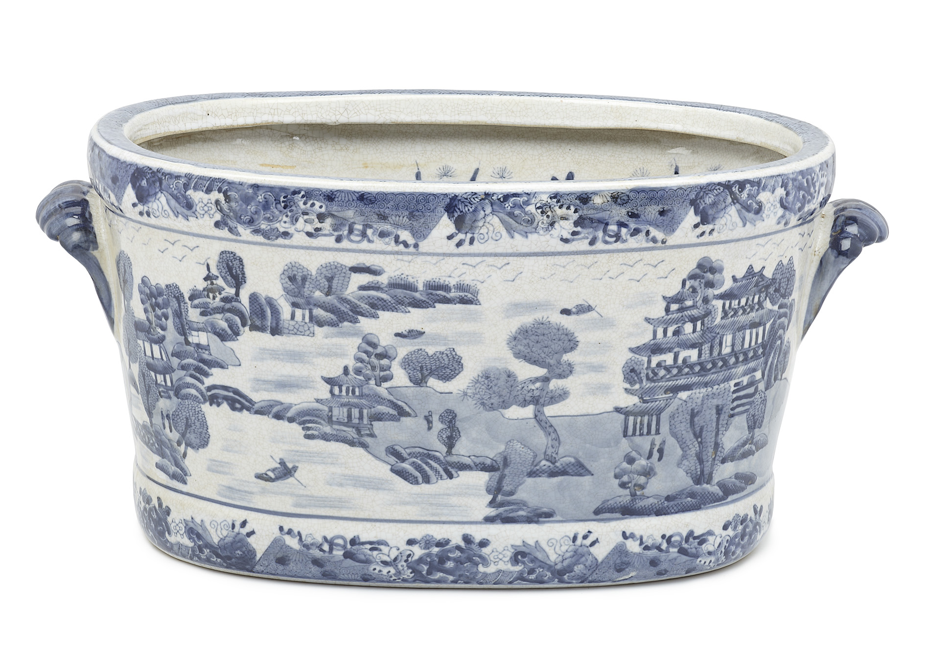 ENGLISH IRONSTONE BLUE AND WHITE FOOTBATH