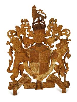 IMPRESSIVE VICTORIAN CAST IRON ROYAL COAT OF ARMS