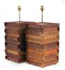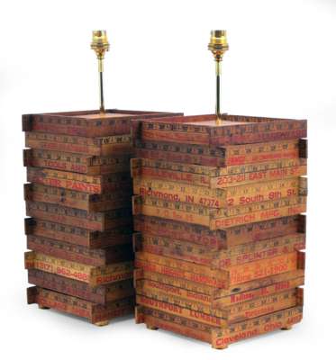 each of rectangular form, composed of various alternating wooden rulers, wired for electricity (2)