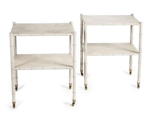 PAIR OF OVER PAINTED FAUX BAMBOO ETAGERES