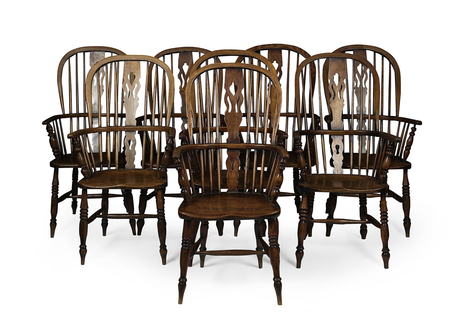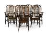 ASSEMBLED SET OF EIGHT ELM WINDSOR ARMCHAIRS