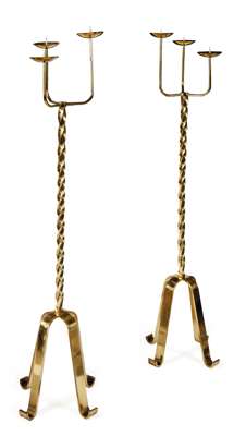 PAIR OF FRENCH BRASS FLOOR STANDING CANDELABRA