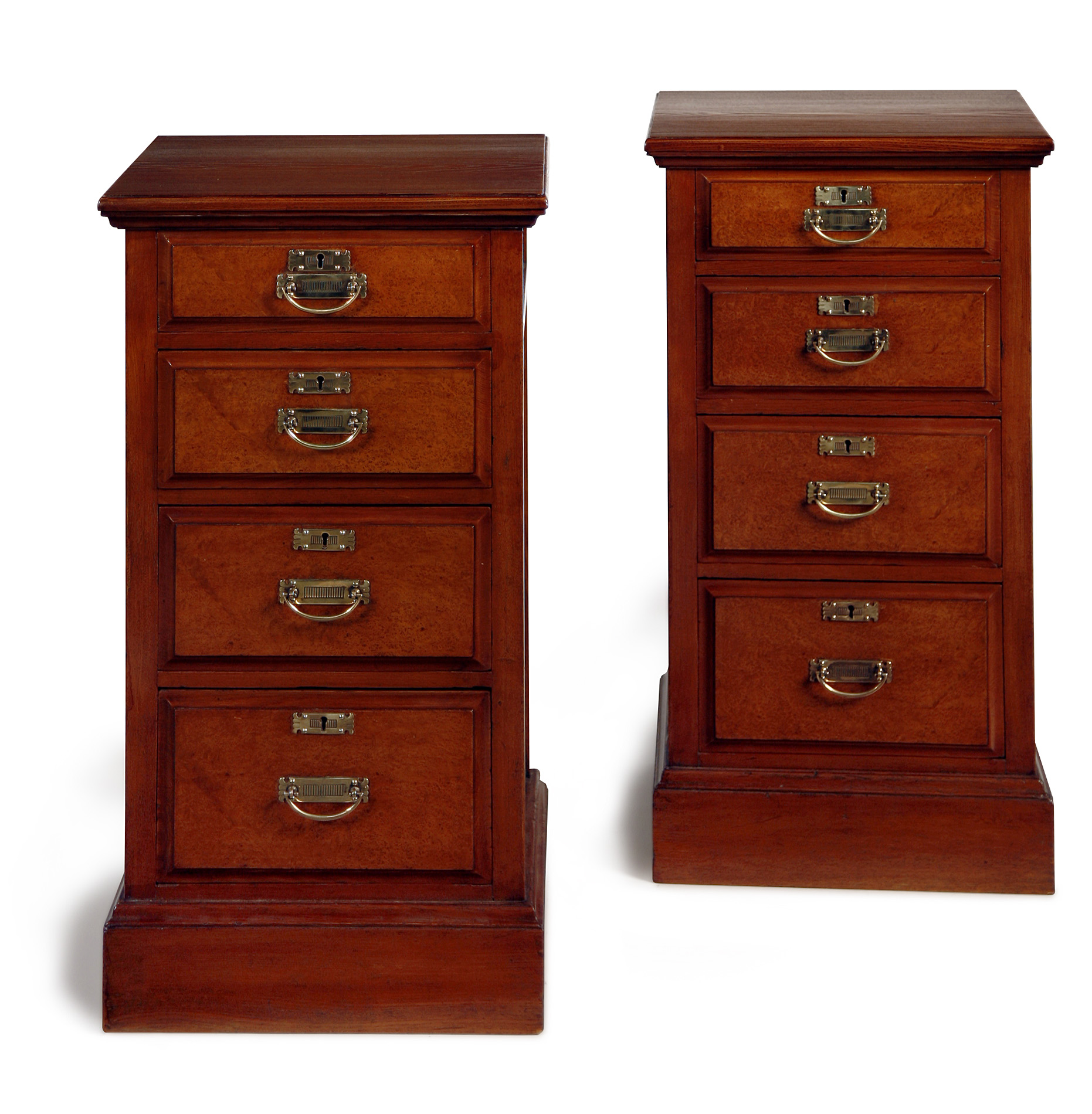 PAIR OF AMBOYNA AND ASH SIDE CABINETS