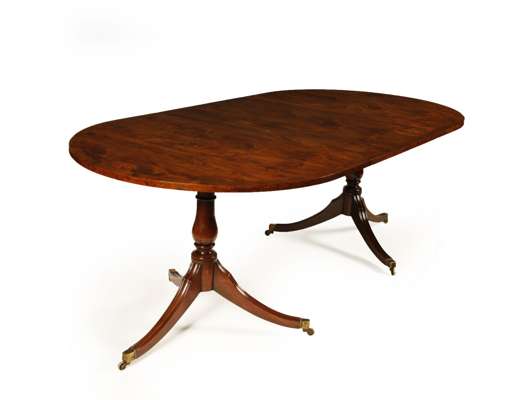 GEORGIAN STYLE WELL FIGURED MAHOGANY TWIN PEDESTAL DINING TABLE