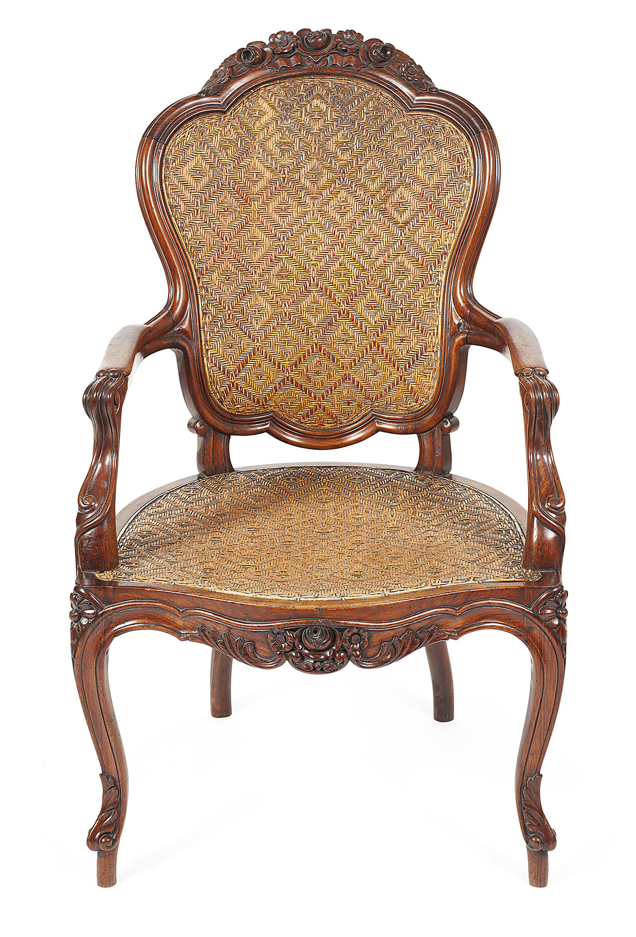 LOUIS XV STYLE WALNUT FAUTEUIL