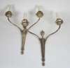 each with a panelled column surmounted by an urn finial, supporting two outscrolling arms, wired for electricity (2)