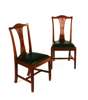 the serpentine top rail above a pierced vertical splat over a drop in pad seat raised on square tapering legs, united by stretchers