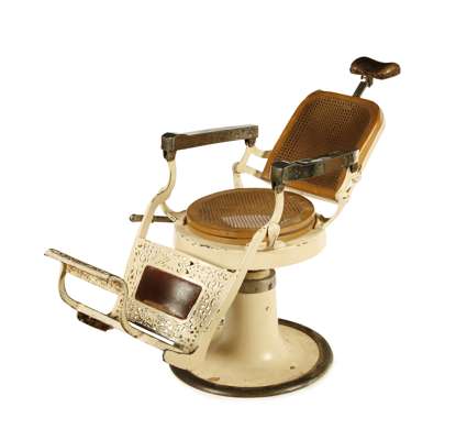 TRIUMPH PATENT PAINTED CAST IRON AND METAL ADJUSTABLE BARBER'S CHAIR