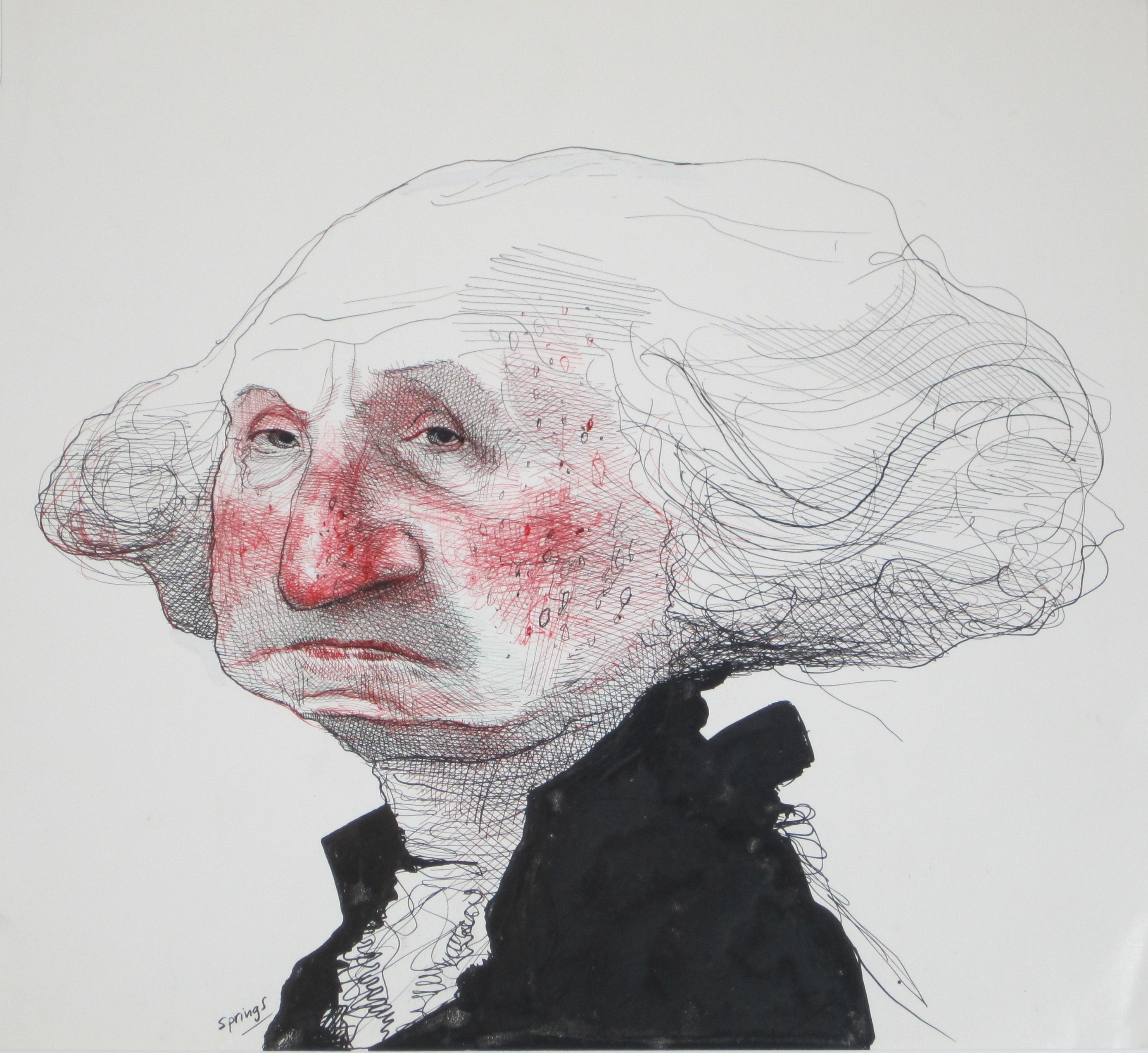 pen and ink with red ink cross hatching, signed, unpublished, circa 1990