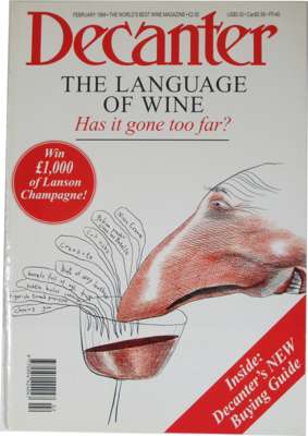 pen and ink with red ink cross hatching, signed, published as the front cover of 'The Decanter', February 1994, 40.5 x 28cm; together with the FRONT COVER OF THE DECANTER, showing 'A Nose for Wine' (2)