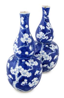 PAIR OF CHINESE BLUE AND WHITE DOUBLE GOURD VASES