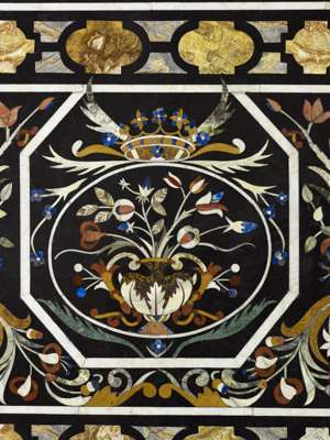 the hinged lid enclosing a void interior above a triple panel front, raised on stile feet