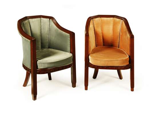 SET OF FOUR HARDWOOD FRAMED ART DECO TUB CHAIRS