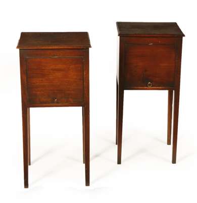 the rectangular top above a vertically opening door, raised on square tapering legs