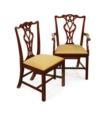 SET OF FOURTEEN CHIPPENDALE STYLE MAHOGANY DINING CHAIRS BY ARTHUR BRETT OF NORWICH