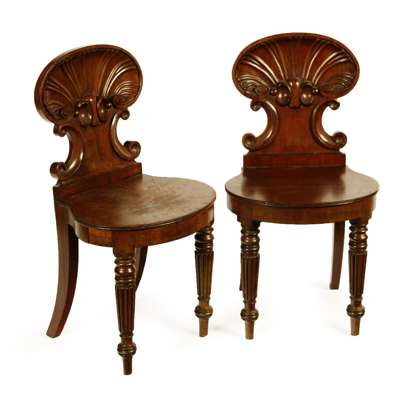 PAIR OF REGENCY MAHOGANY HALL CHAIRS IN THE MANNER OF GILLOWS