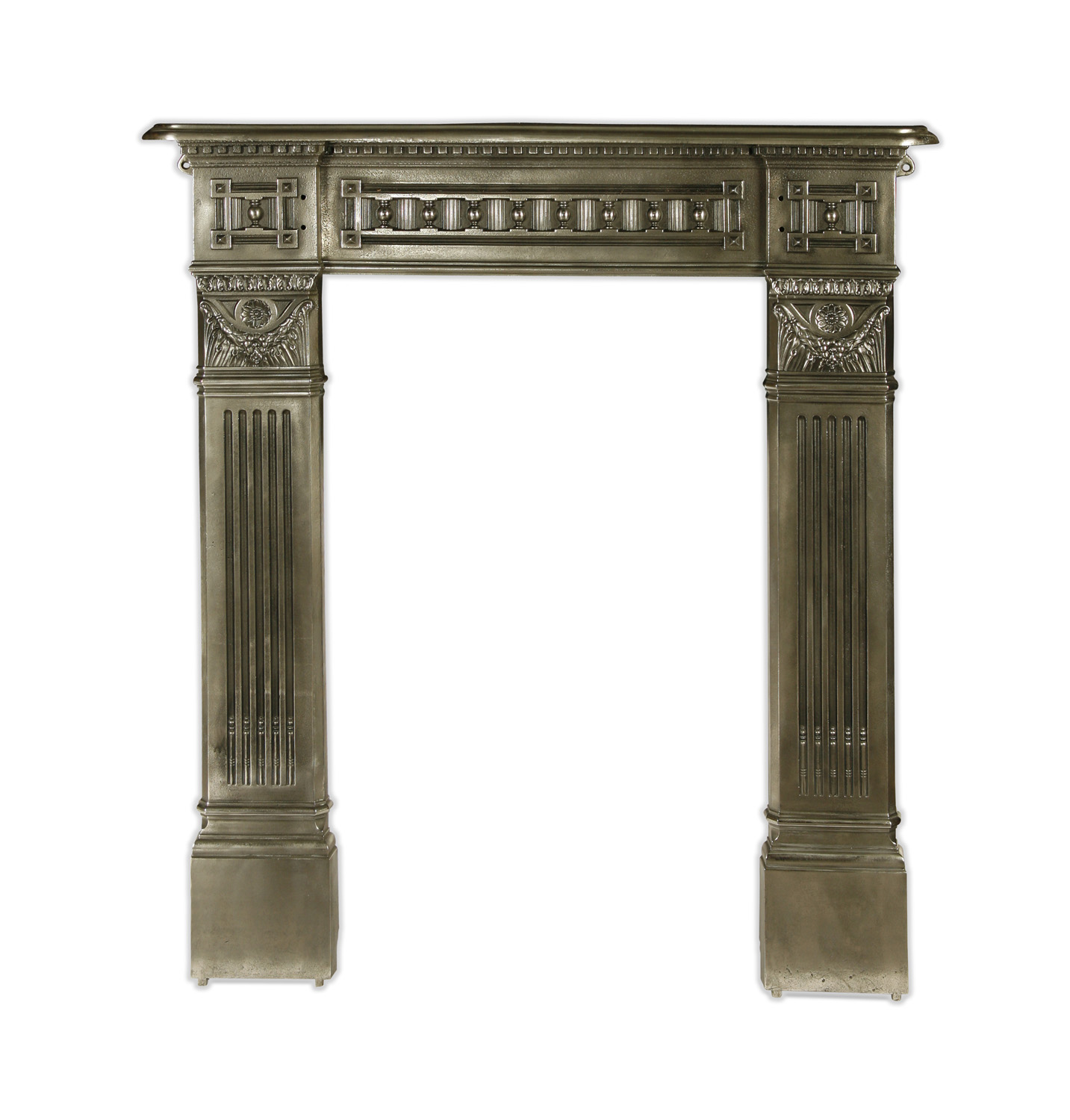 the moulded mantle above a stylised motif decorated frieze, raised on twin corinthian style pilaster supports