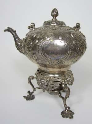 MATCHED GEORGE II SILVER SPIRIT KETTLE AND STAND