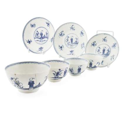 GROUP OF FIRST PERIOD WORCESTER BLUE AND WHITE TEA WARES
