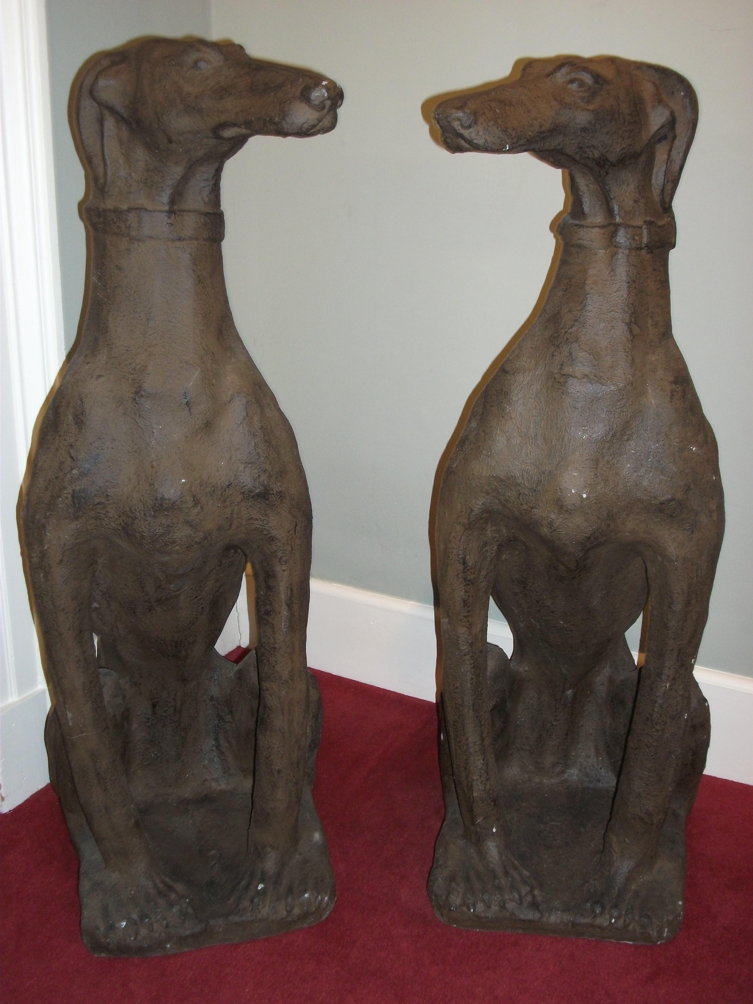 PAIR OF PAINTED COMPOSITION MODELS OF GREYHOUNDS